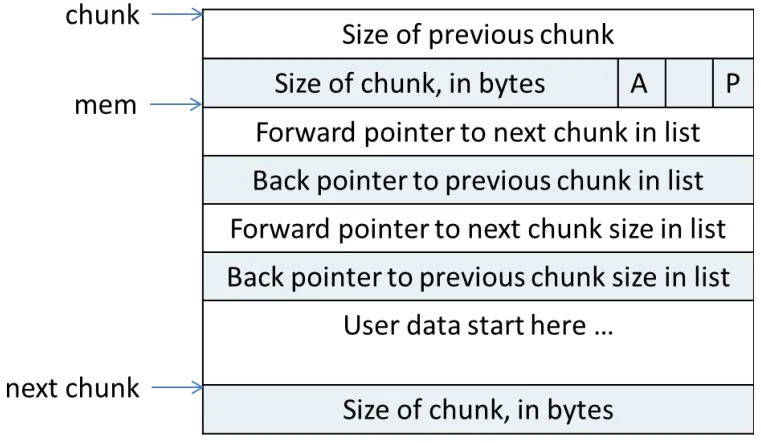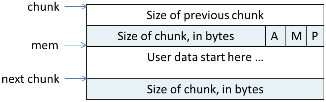 注意P位,当它是0的时候标志物理相邻的前一个堆块是被释放的,有时候可以合并